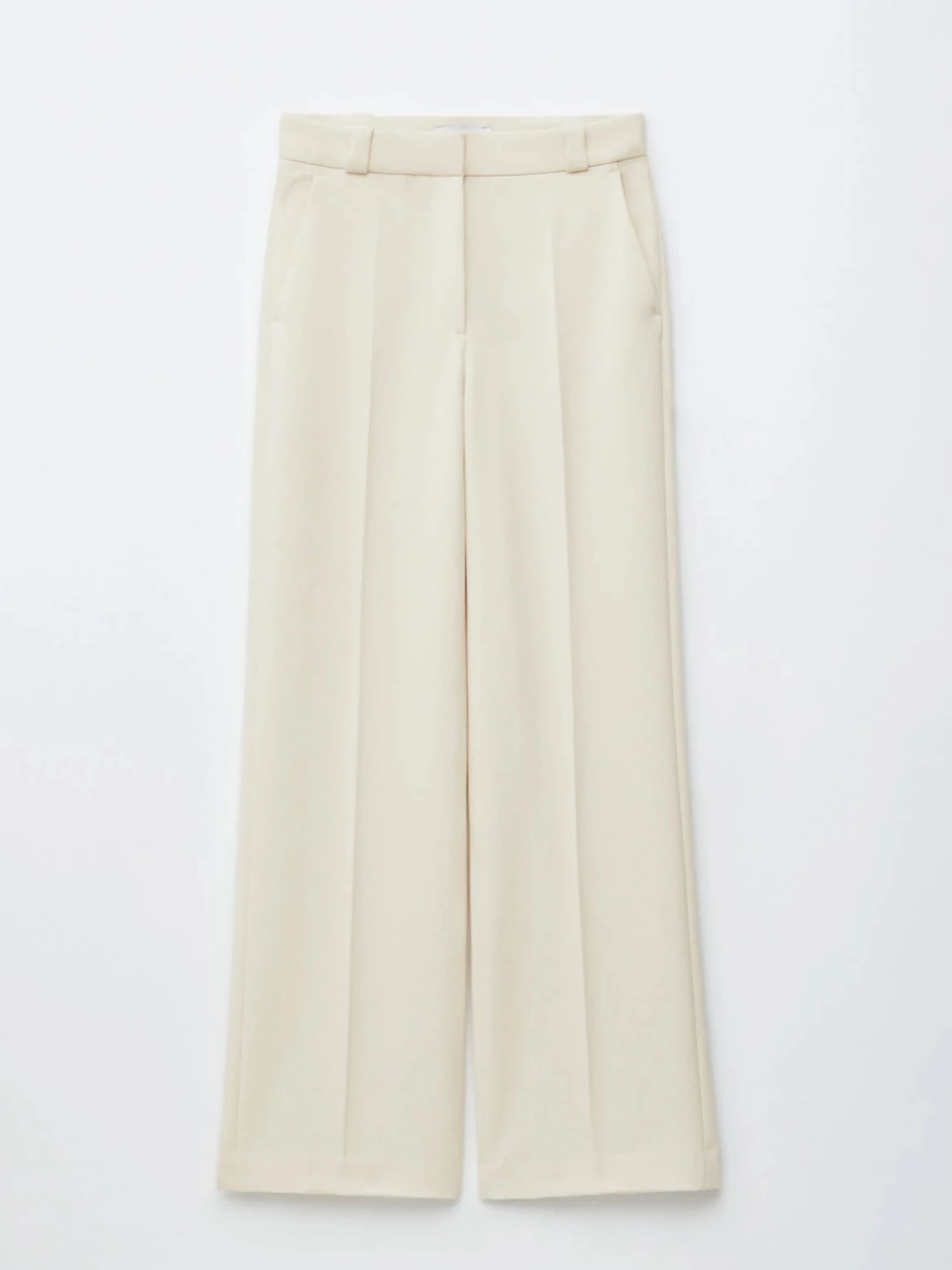 Törtfehér/ekrü bőszárú, magas derekú Stockholm Atelier nadrág.Viszkóz-poliészter-elasztán keverék anyagból. 40-es