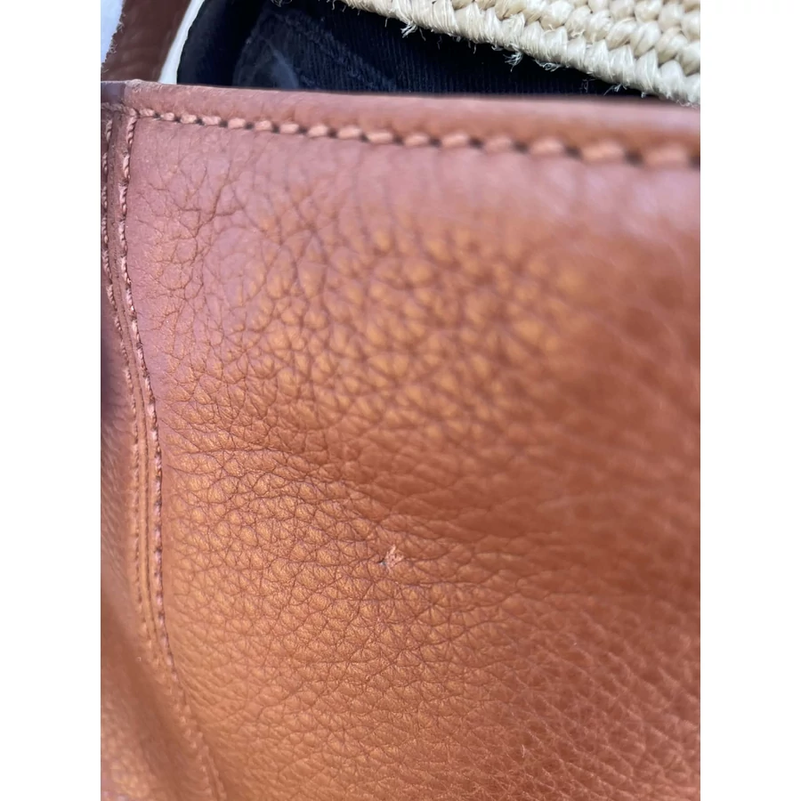Fahéjbarna, nagyméretű Coach táska. Vállpántja állítható. Egyterű, fekete béléssel. Logós cipzárhúzó. A táskatesten kisebb, használatból adódó hibák, de nem szakadt a bőr. A sarkok épek. A cipzárhúzó felirata enyhén kopott. Összességében kiváló állapotú, hosszú élettartamú, magas minőségű darab. 46x36 cm.