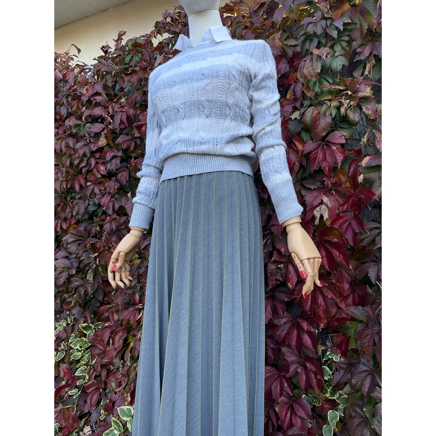 | Szürke-törtfehér csíkos, csavart mintás merinó gyapjú keverék pulóver. S-es | |