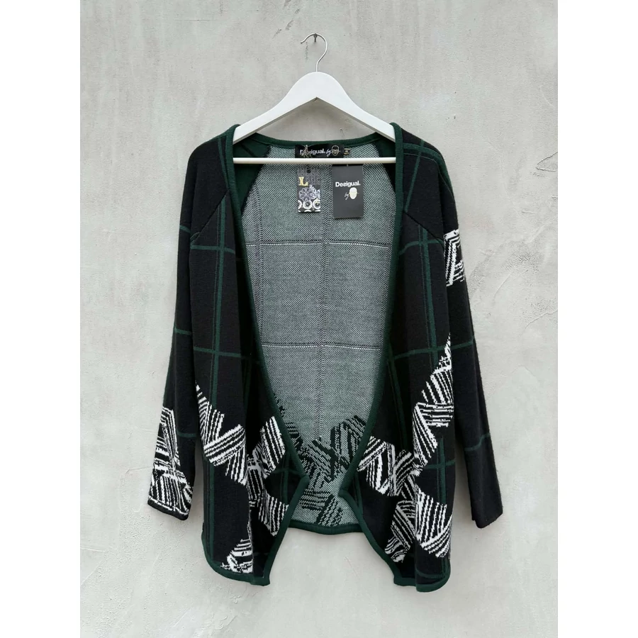 Gyapjú keverék, vékonykötött zöld-fekete mintás Desigual collab Lacroix kardigán. Új, címkés. S-es, de szabása miatt kisebb M-re is javaslom. (eredeti ára 90 Eur)