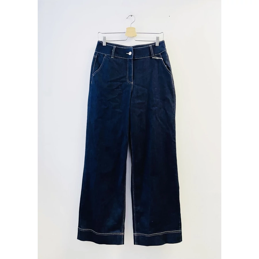| Sötétkék, bőszárú farmernadrág széles felhajtóval. Beleírt 29/30 de inkább 30/30. Rugalmas. Új, címkés | |