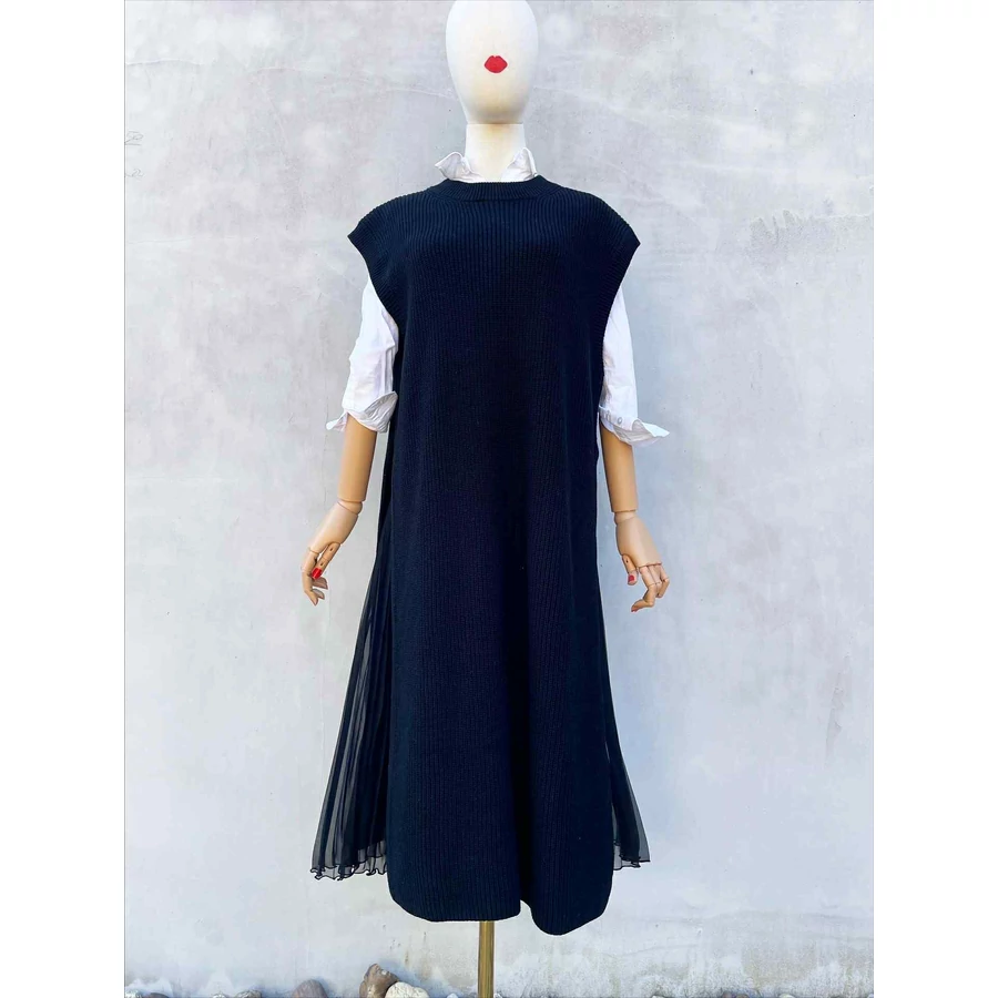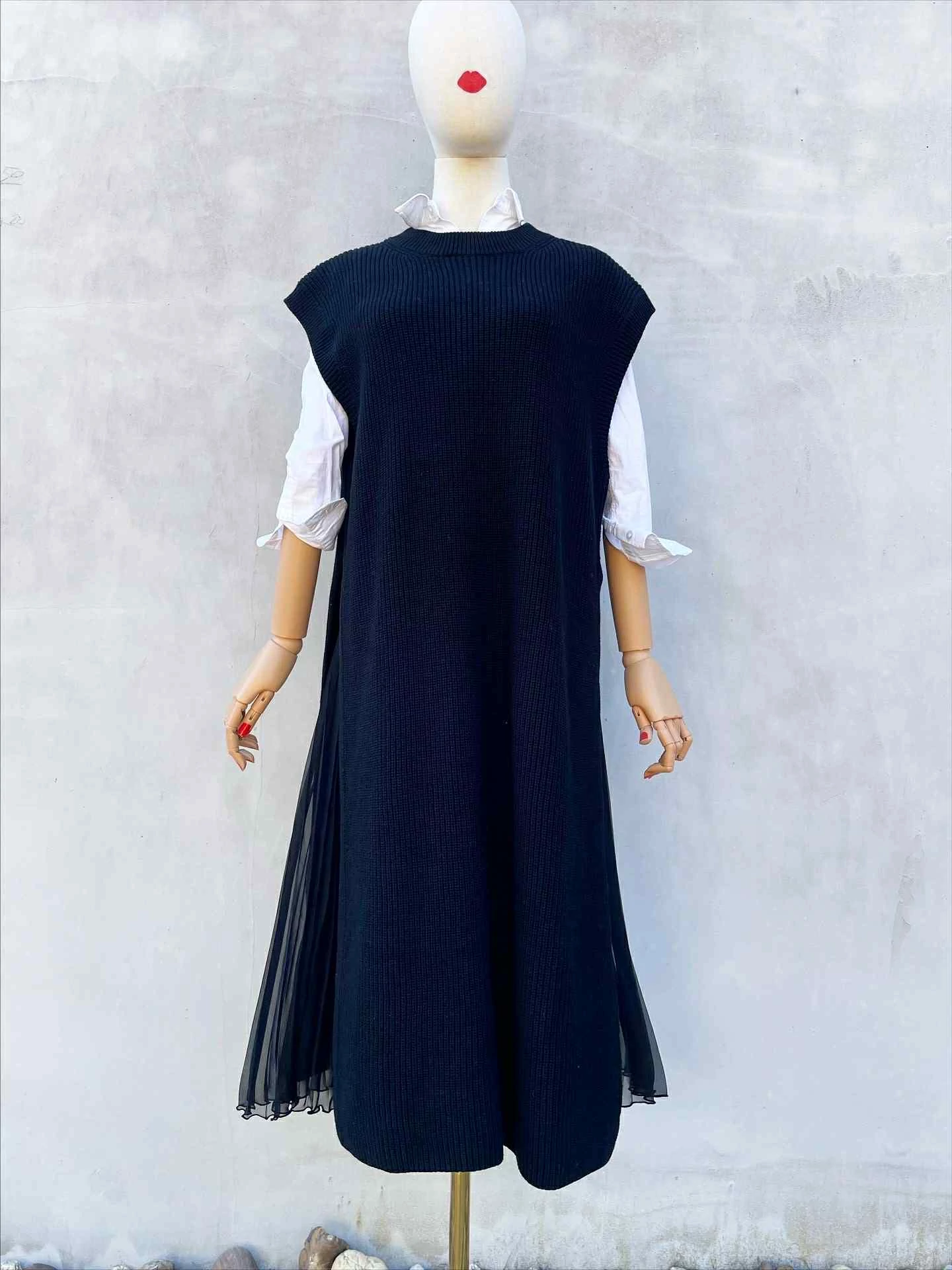 | Fekete, pamut keverék, H&M bordáskötött maximellény. Oldala magasan nyitott, szoknyához, ruhához nadrághoz egyaránt jól mutat. Beleírt L, de M-re is ajánlom. | |