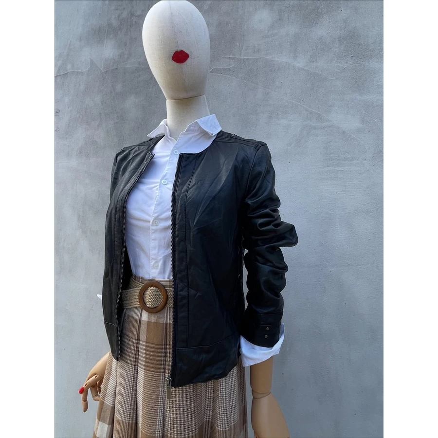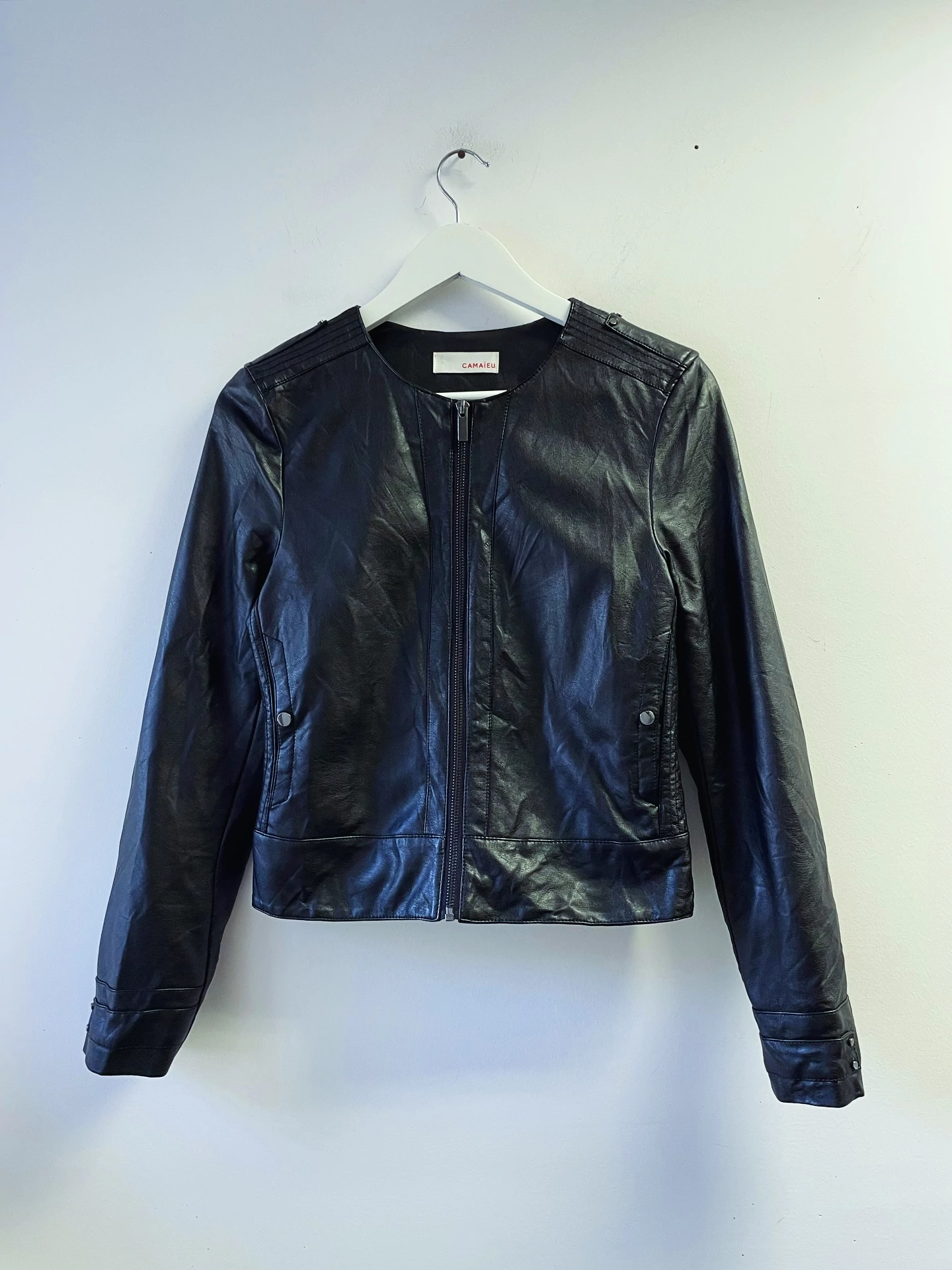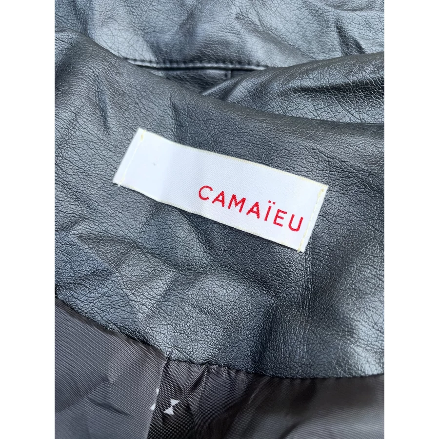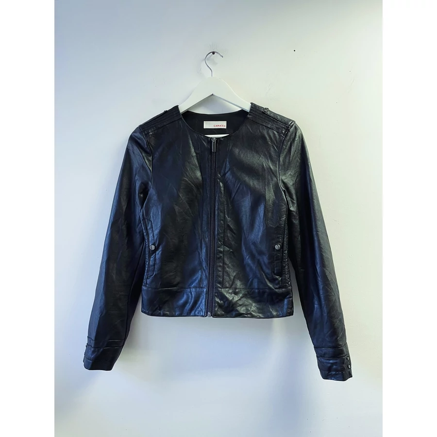 Camaieu, fekete karcsúsított műbőr dzseki. XS