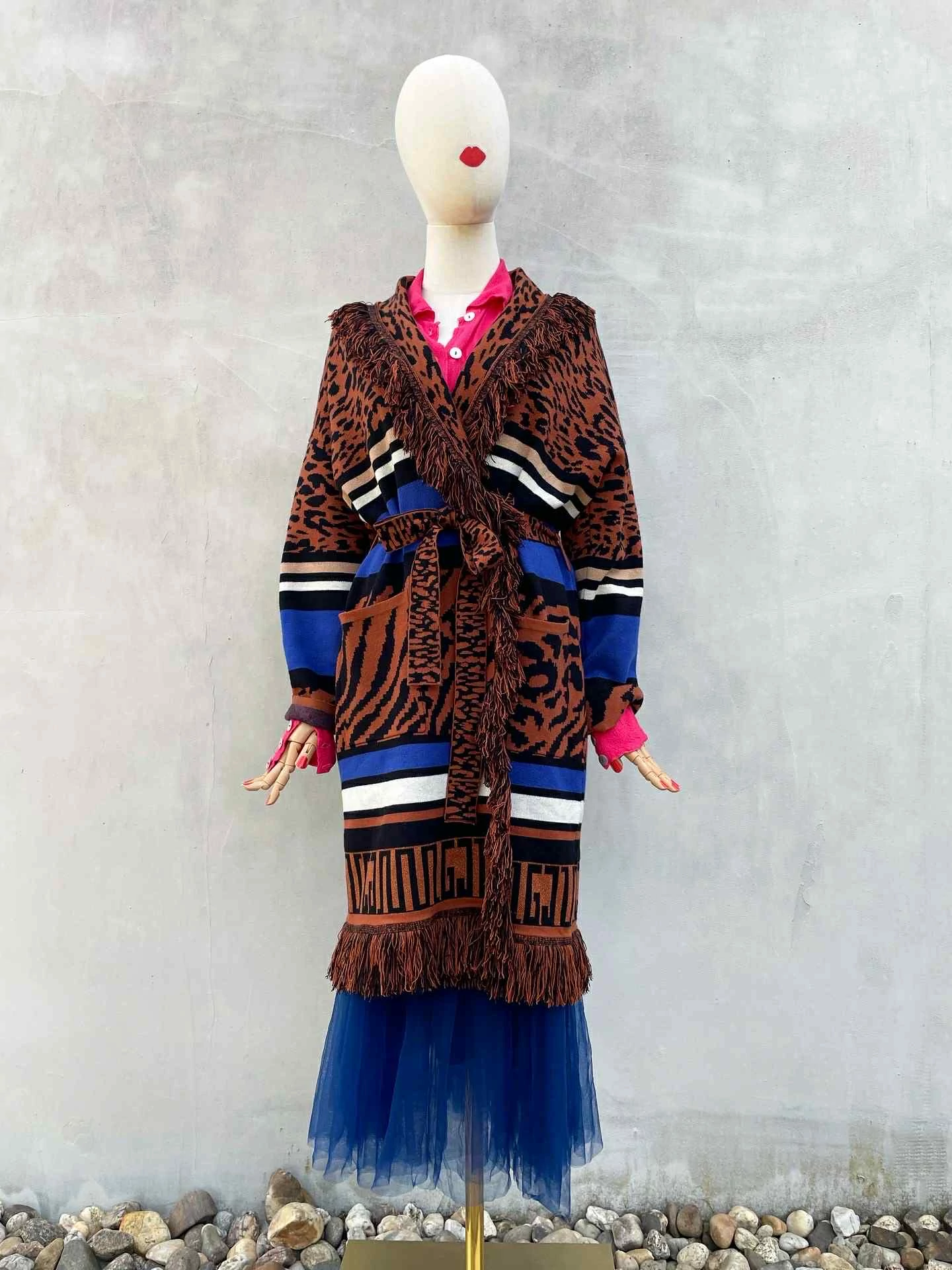 Színes, állatmintás Gaudi Jeans rojtokkal, saját övvel. A friss, kifinomult, érzeki olasz stílus jellemzte brand egyik pompás darabja. Viselheted szoknyával vagy nadrággal is. Viszkóz-poliészter keverék, puha, finom tapintású anyagból. Beleírt S, de M-re is ajánlom.