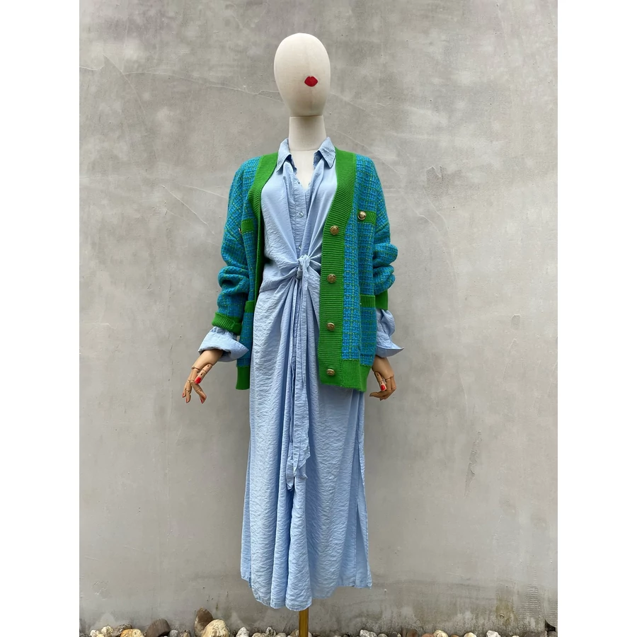 | Világoskék, viszkóz midiruha. Nagyon szép színe és kellemes anyaga is van. L-es | |