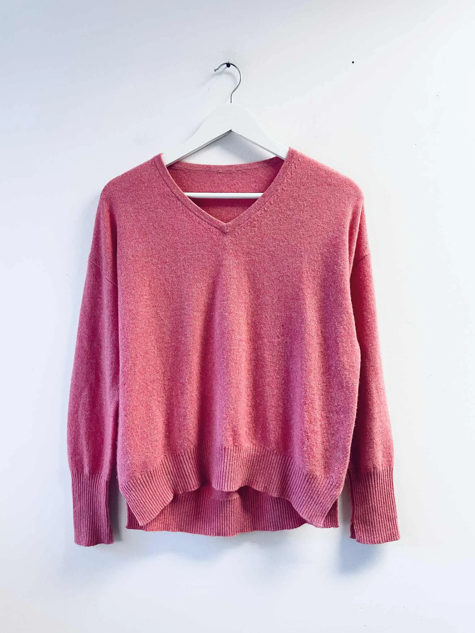 Lazacpink 100% kasmír Kaufhof V- nyakú pulóver. Hibátlan, puha, finom darab. M-es