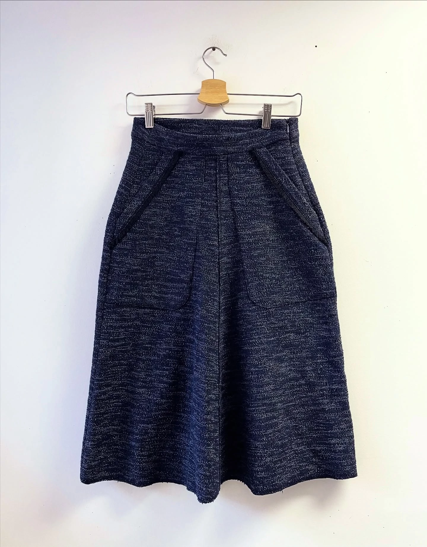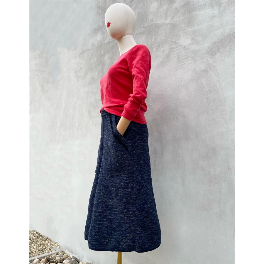 | Sötétkék, szövött midiszoknya. Zsebeket fekete rojt díszíti. Pure kollekció része, basic darab, vastagabb anyagból. Őszi, téli időszakra kiváló! XS, de nagyon vékony derekú S-re is ajánlom. | |
