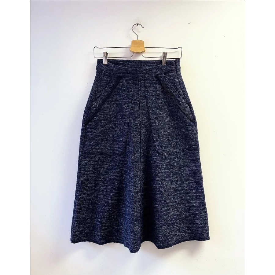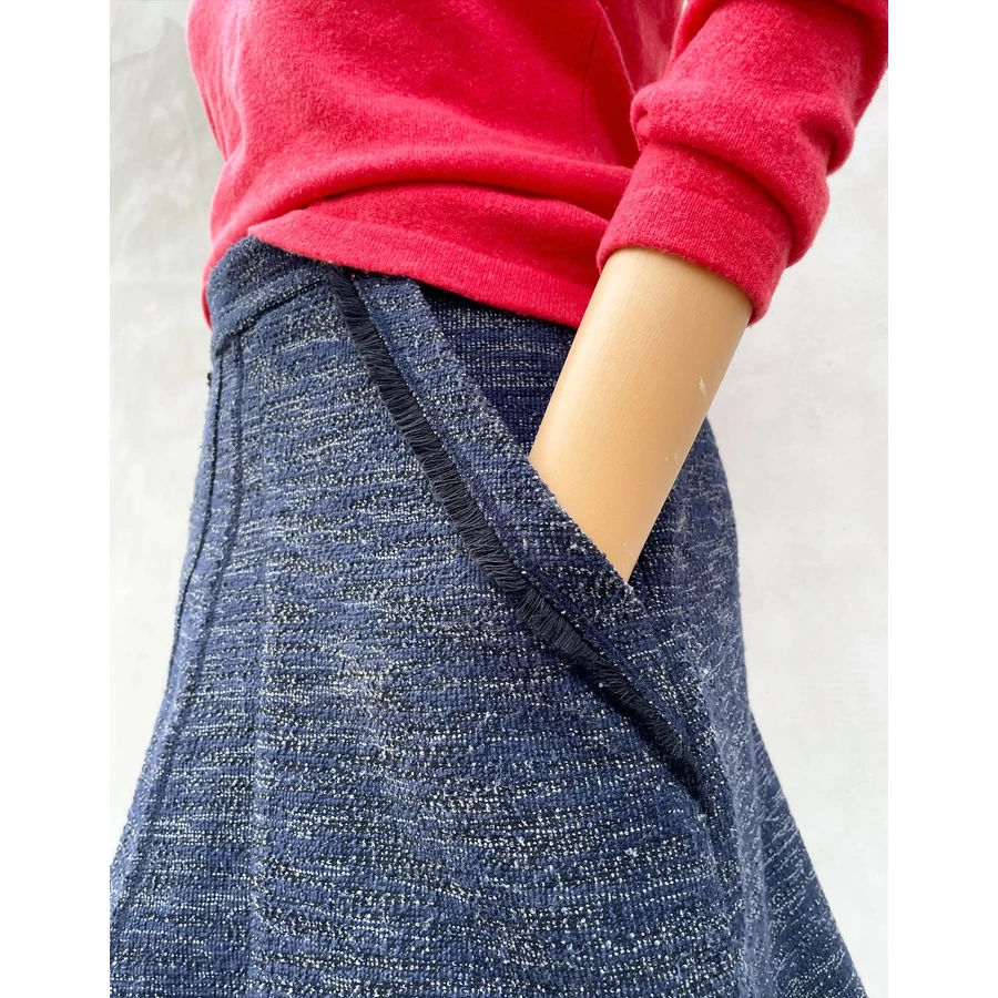 Sötétkék, szövött midiszoknya. Zsebeket fekete rojt díszíti. Pure kollekció része, basic darab, vastagabb anyagból. Őszi, téli időszakra kiváló! XS, de nagyon vékony derekú S-re is ajánlom.