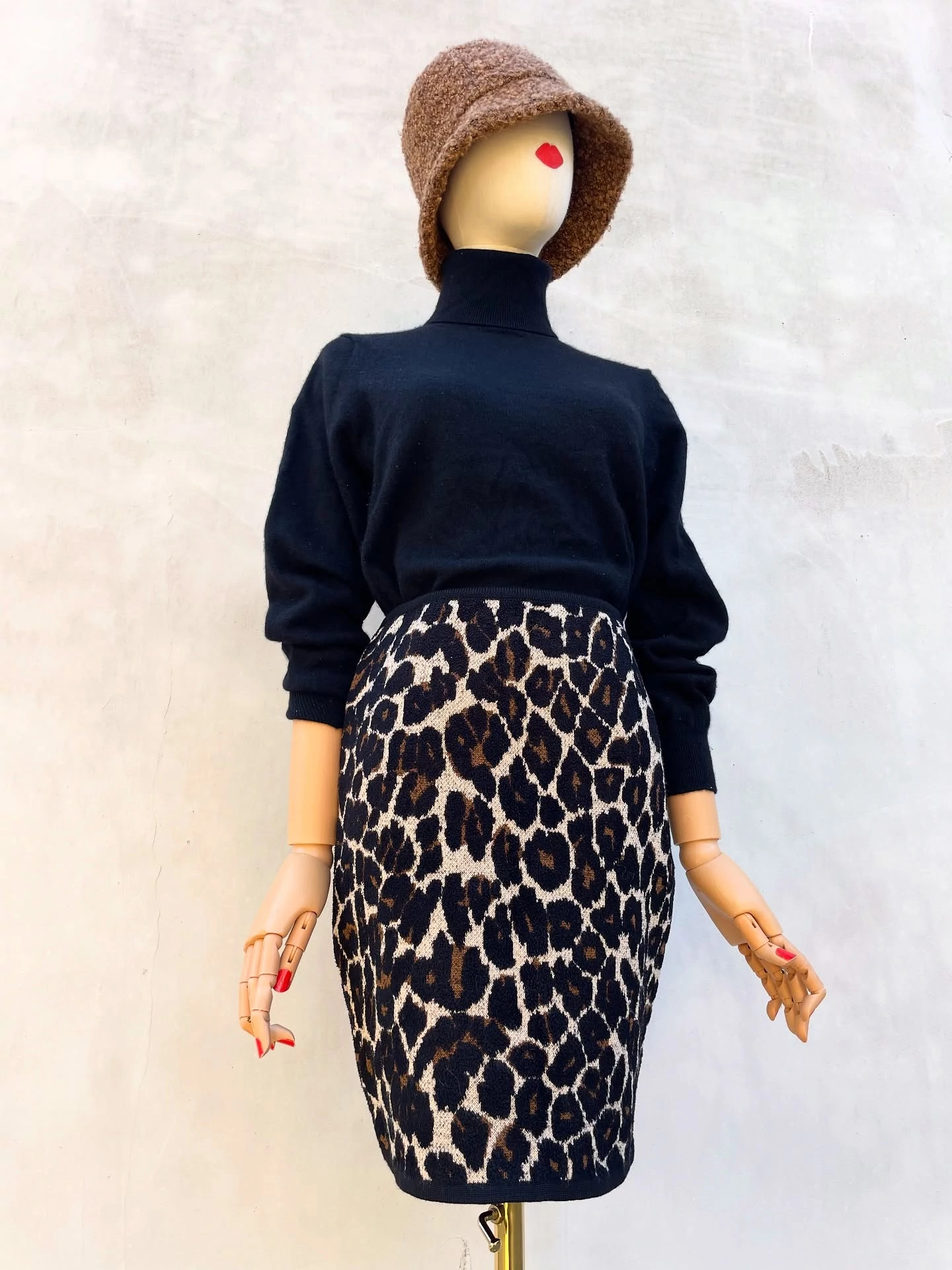 Ocelot mintás, kötött gyapjú szoknya. S/M