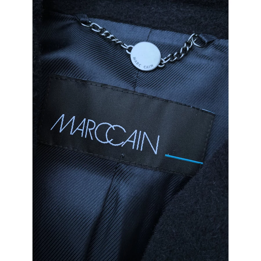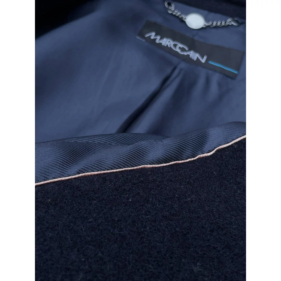 | Sötétkék Marc Cain szövetkabát, egysoros gombolással. Összetétele: 52% alpaca, 26% gyapjú, 22% poliamid. Bélése viszkóz keverék. Pompás darab, kívül belül hibátlan. Szerintem nem is viselte senki. N3, ami L-es méretnek felel meg. (Jelenleg is kapható, ára 228.000 ft) | |