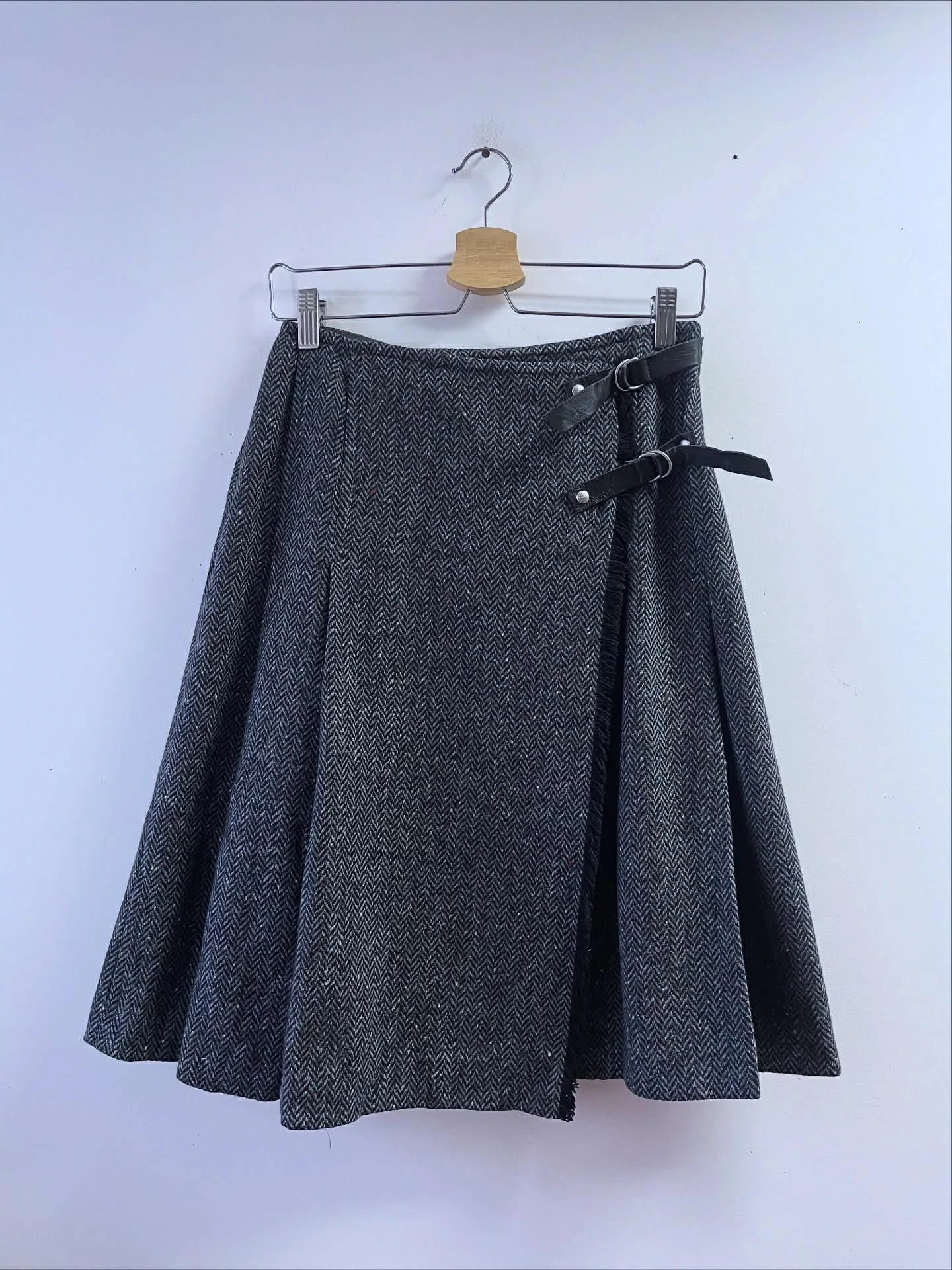 Max Mara Weekend tweed rakott szoknya, átlapolós, kapcsokkal, bőrpántokkal záródik. Különleges darab, a brandra jellemző magas minőséggel. S vagy kisebb M méretre.