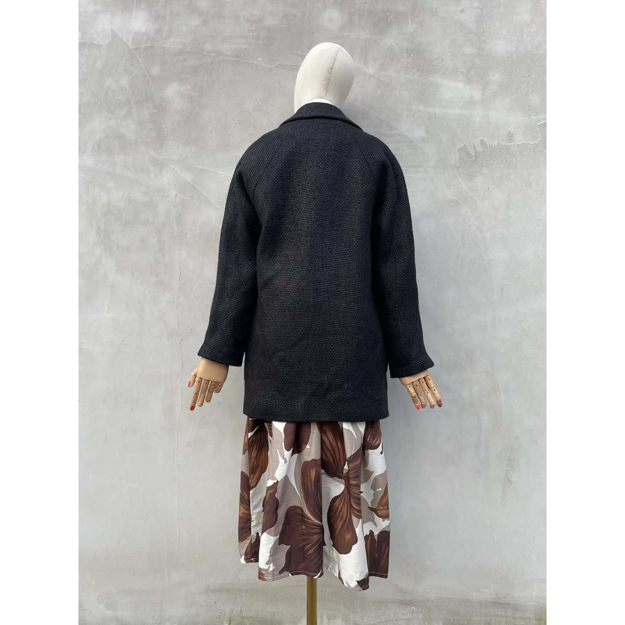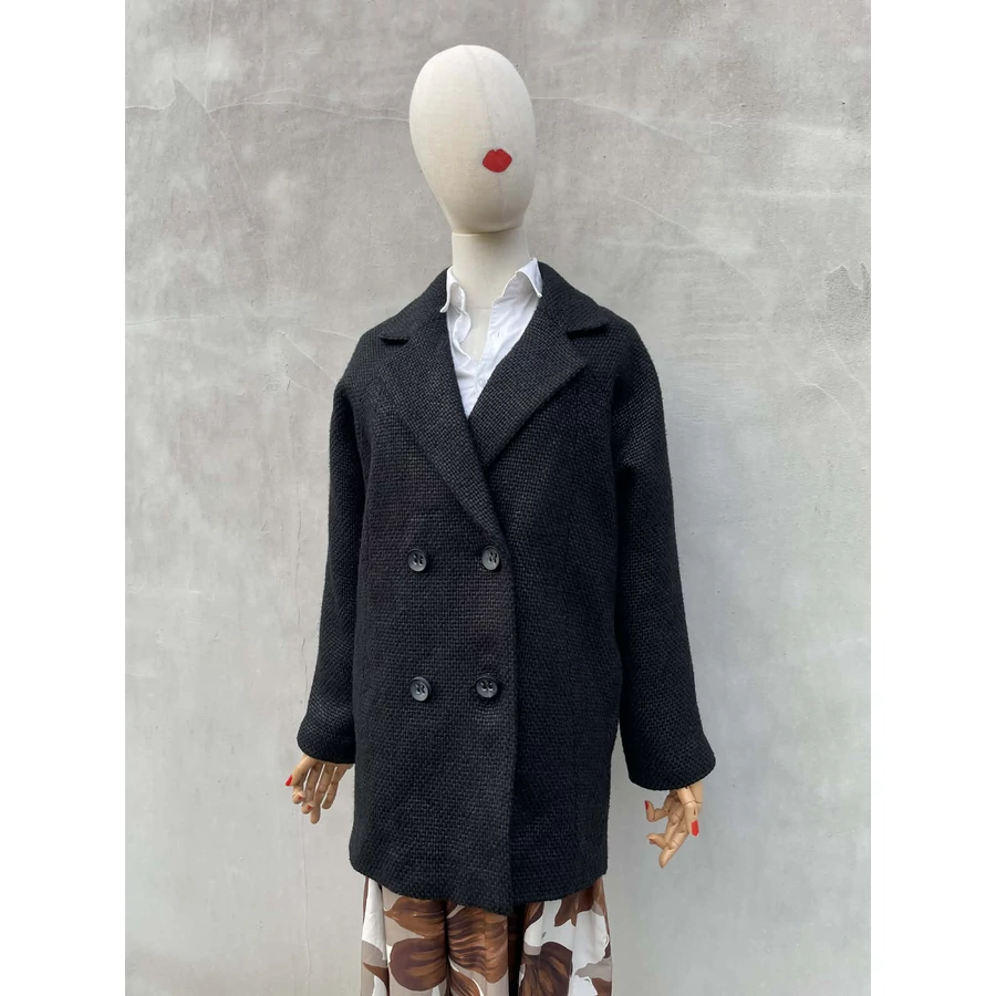 Naf Naf kétsoros, gyapjú keverék kabát. Raglán ujjas, struktúrált szövetből készült. Szép, nőies darab. Beleírt 34-es, de kissé oversize szabása miatt S-re is ajánlom.