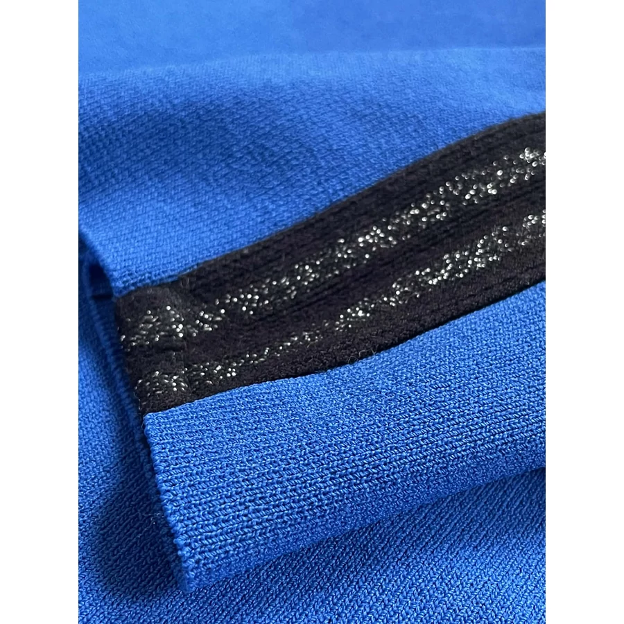 Királykék, viszkóz keverék Nü Denmark felső, vállán, ujján fekete szalag díszítéssel. Önmagában vagy ing fölé is viselheted. S-es