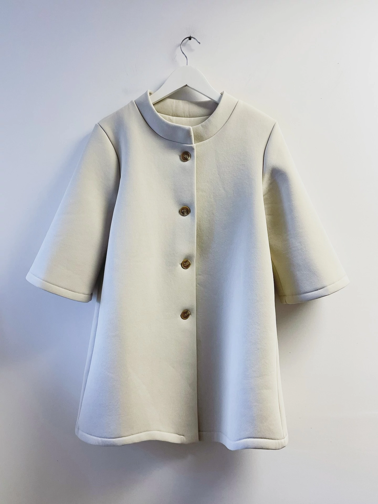 Neoprén jellegű, háromnegyedes ujjú kabát. Olaszországban készült. Belseje szürke bélésses. Méret nélkül. S-re oversize, M/L-re is ajánlom.