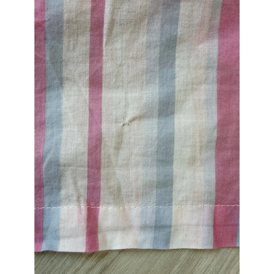 Csíkos, enyhén ballon ujjú, finom pamut blúz. Eleje alján kis javítás. Ettől eltekintve tökéletes állapotban van. Szép darab, ha picit betűröd nem is látszik a javítás. 42-es