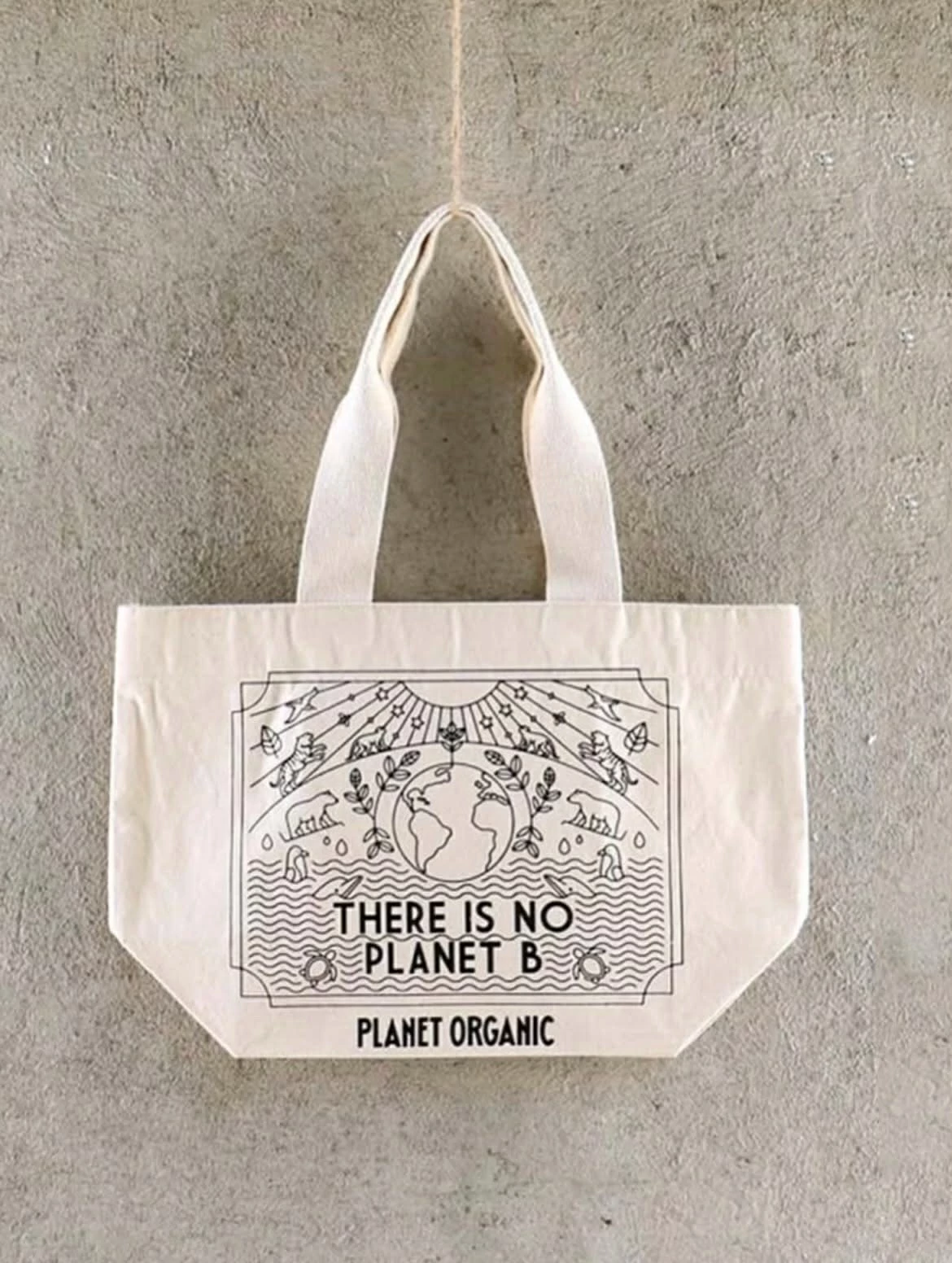 Oragnikus pamut bevásárlótáska "Nincs B bolygó felirattal". Egyterű, egy oldalzsebbel.