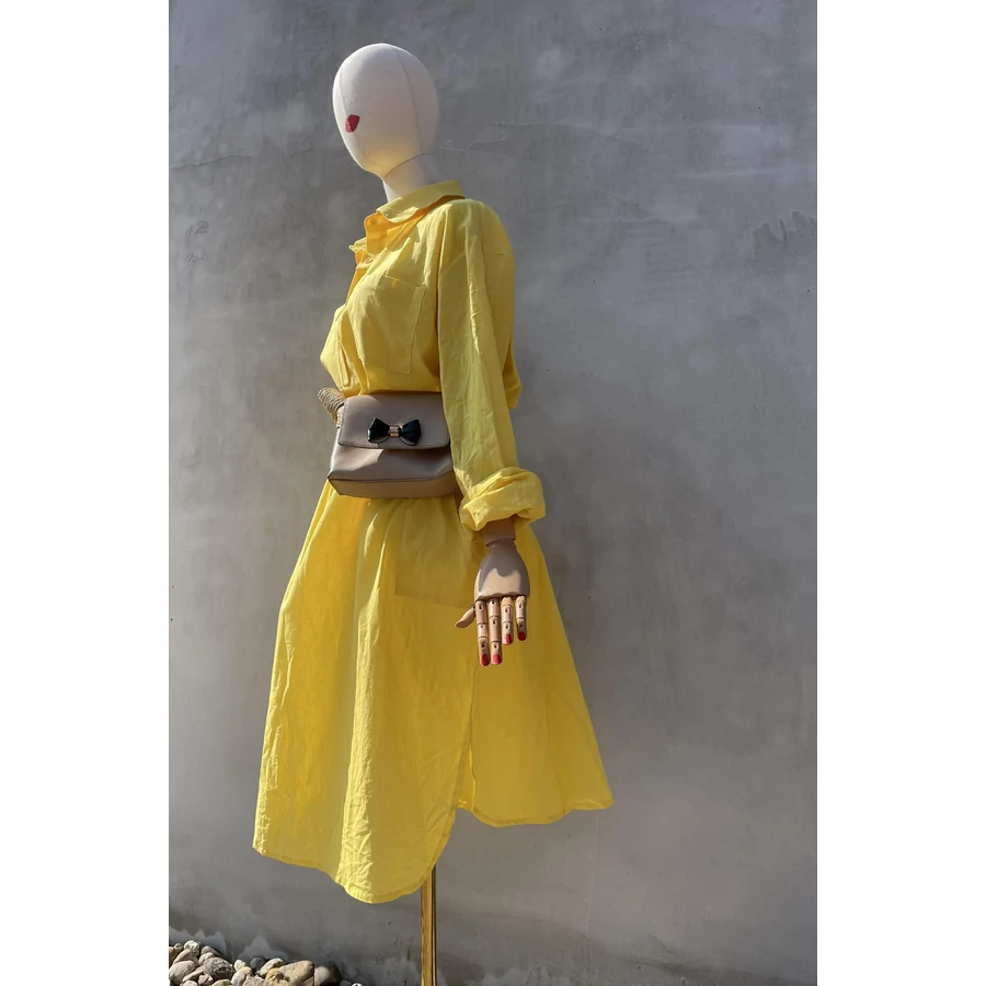 | Kikericssárga, pamutvászon ingruha, rátett zsebekkel. Méret nélkül, M vagy kisebb L méretre ajánlom. Új. | |