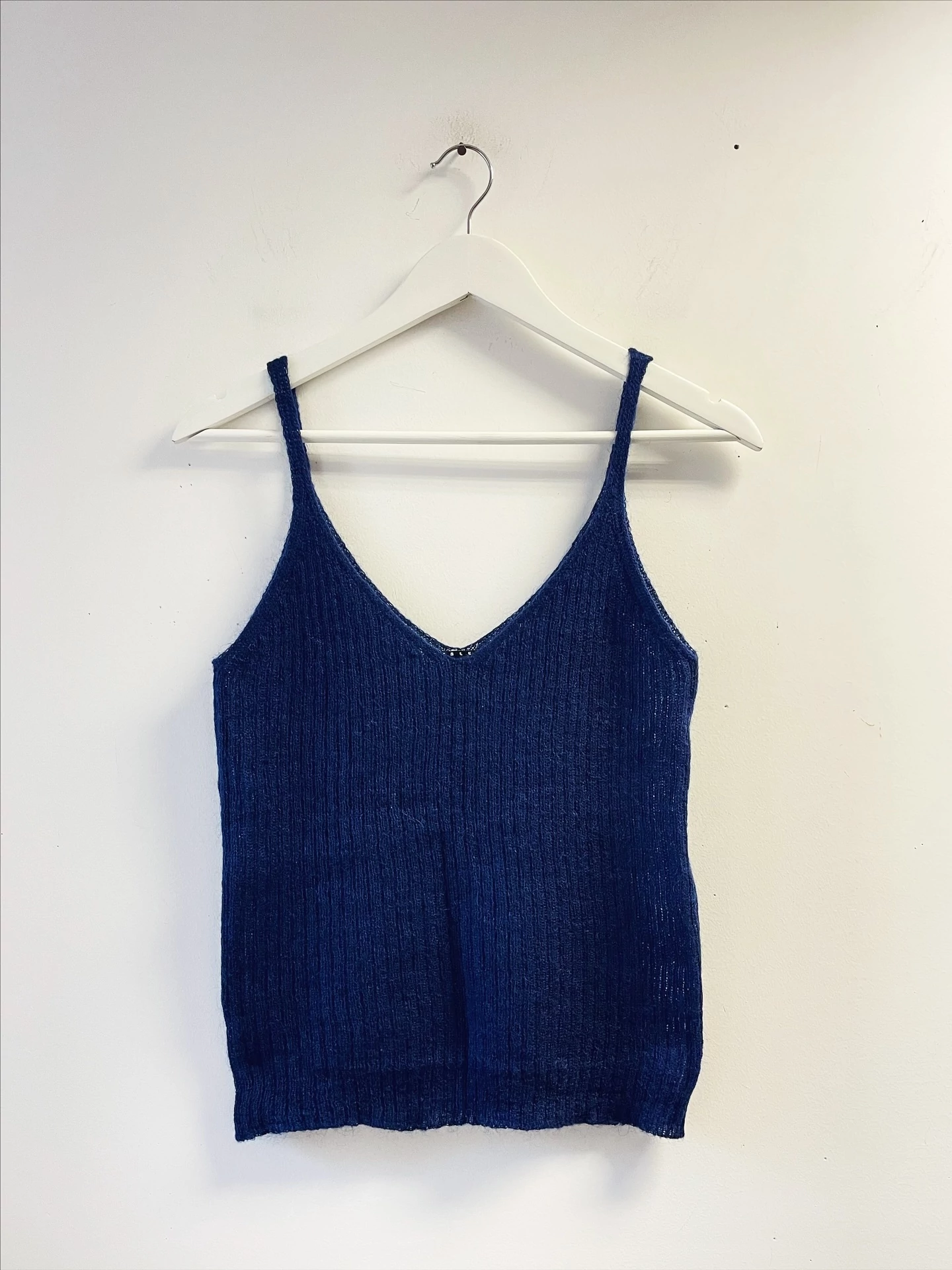 | Sötétkék, vékonykötött gyapjú Sisley top/mellény. Finom, nőies darab. S/M | |