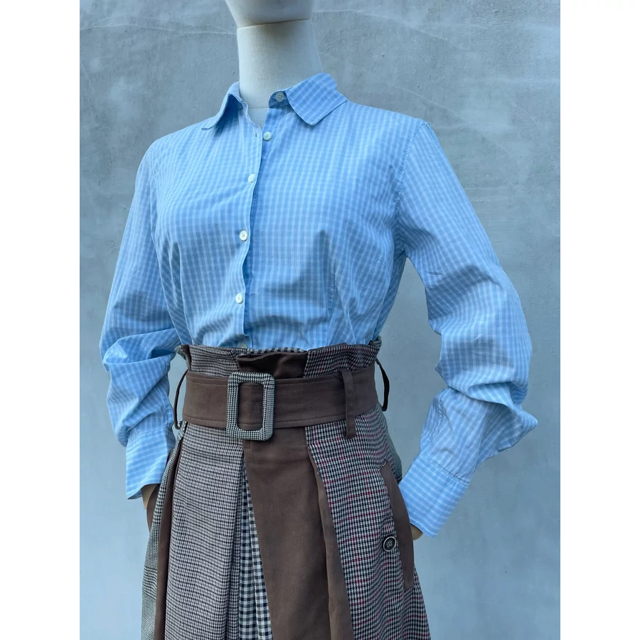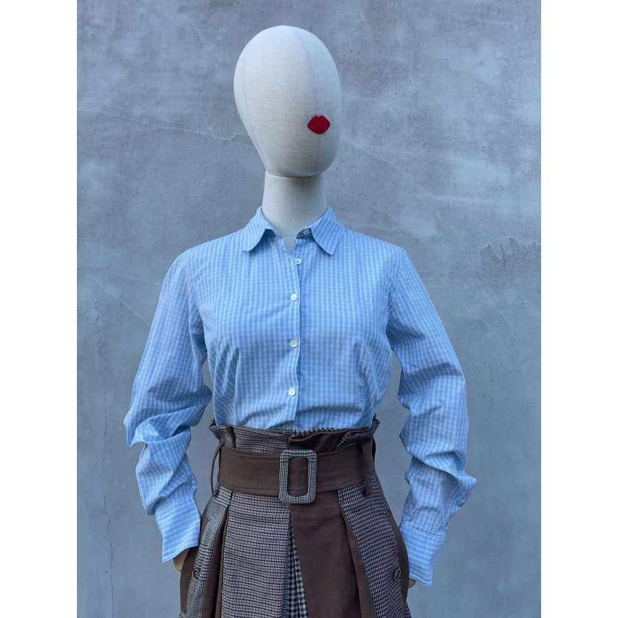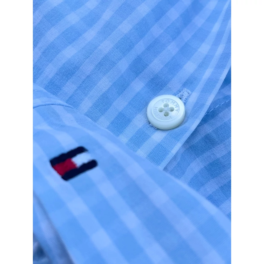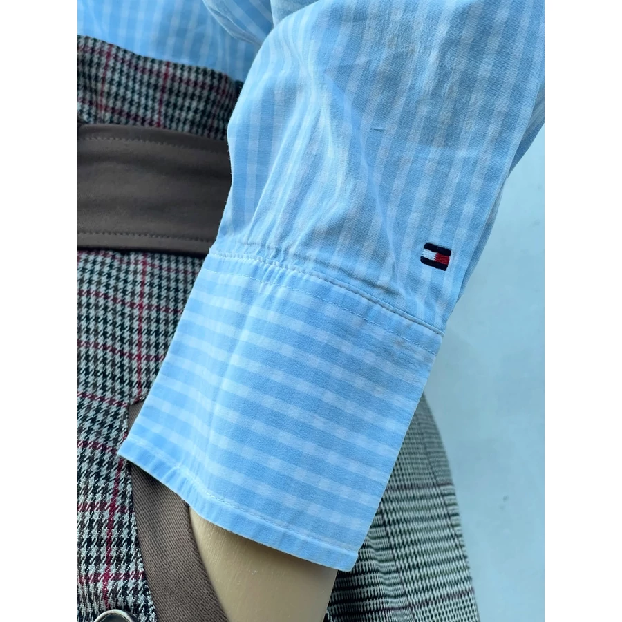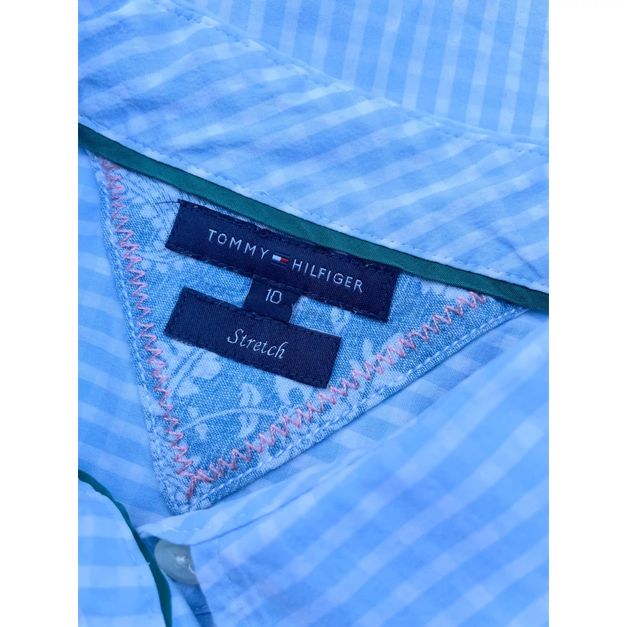 | Világoskék kockás TH pamut ing. Rugalmas. Logós gombok, ujján zászló hímzés. Hibátlan, szép darab! M-es | |