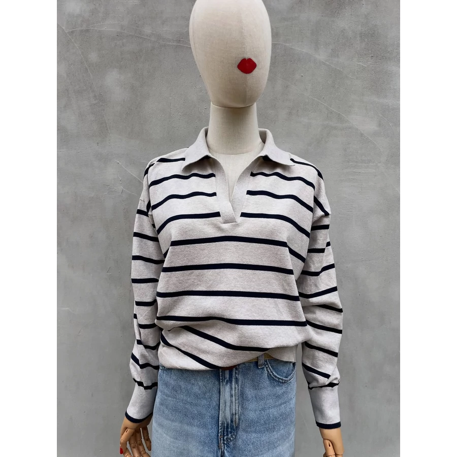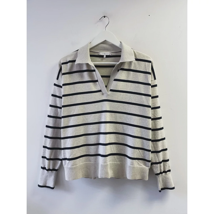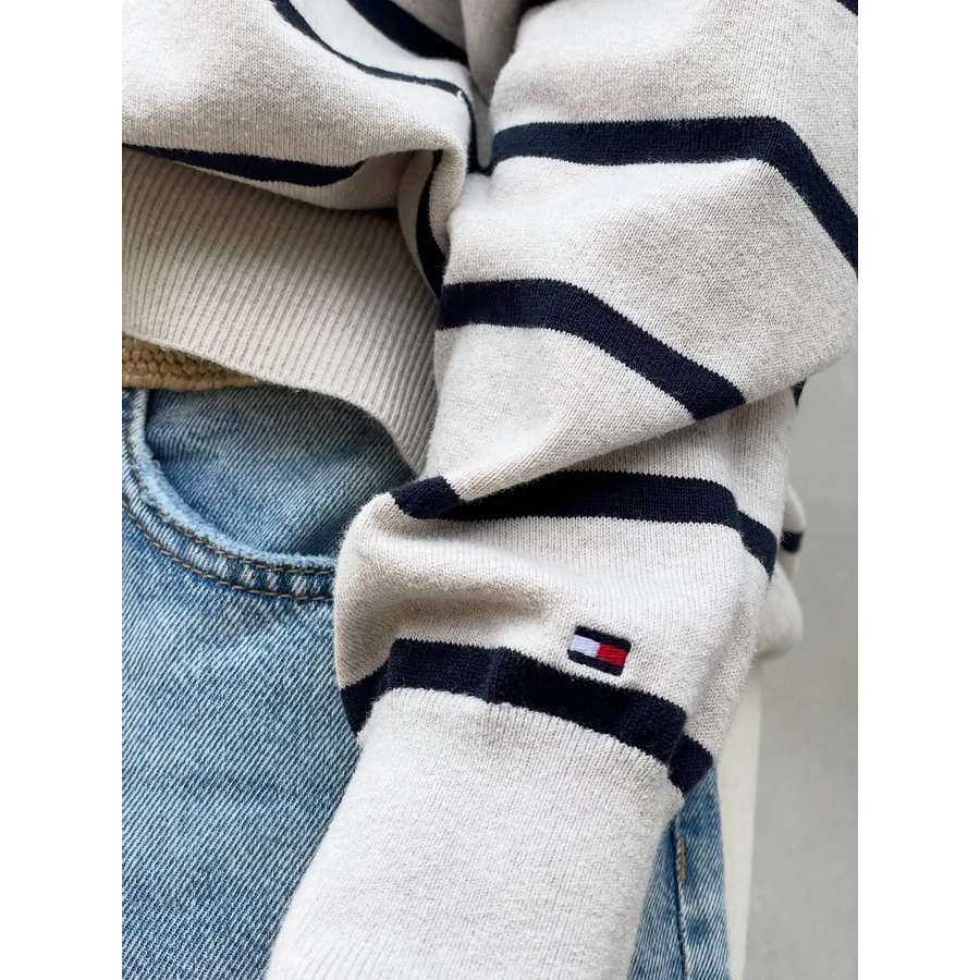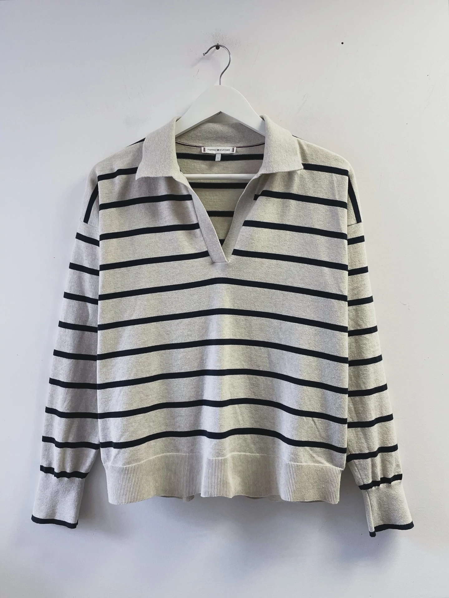 Tommy Hilfiger, galléros, csíkos pulóver, hímzett márkajelzés az ujján. L-es