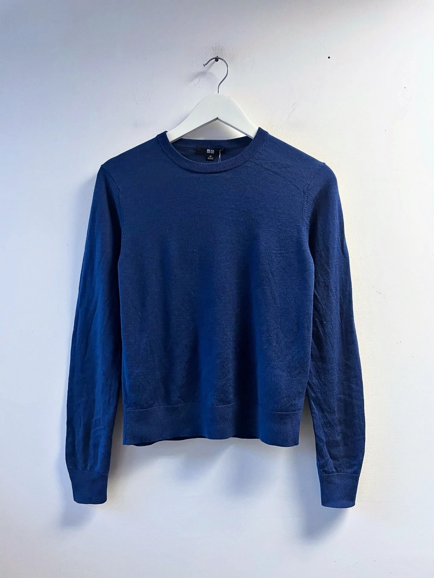 | Sötétkék, extra finom merinó gyapjú pulóver. XS. Új, címkés | |