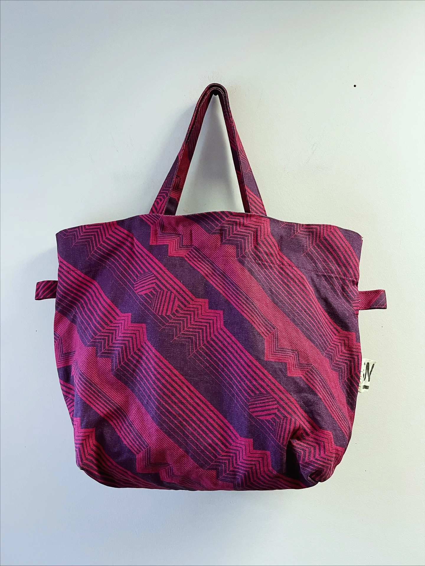 | Pink-lila mintás, vízlepergető anyagból készült, egyterű Vans táska. Egy cipzáras zsebbel. | |
