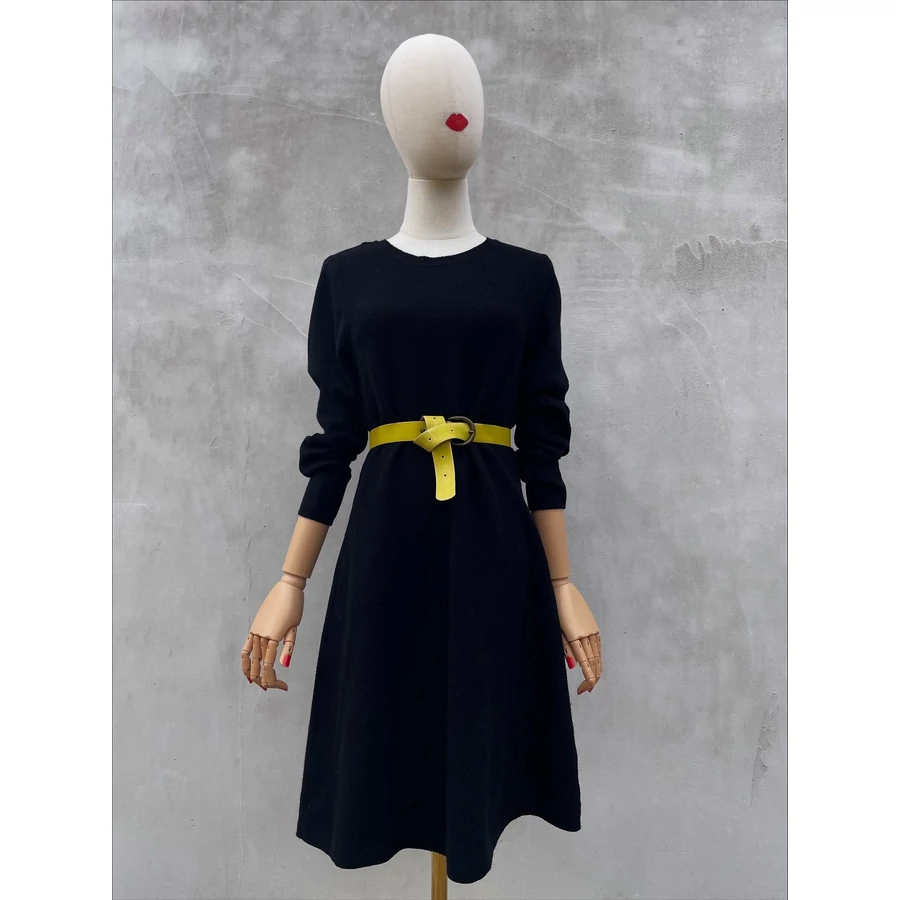 Viszkóz keverék, kerek nyakú kötött ruha. Méret nélkül, M-re ajánlom. S méreten oversize, de övvel azon is jól mutat.