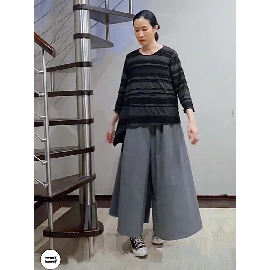Szürke Wendy Trendy nadrágszoknya, saját övvel. Zsebes. Dereka hátul gumis, 39 cm, kb. 41 cm-ig nyúlik. Viszkóz keverék anyag. Vastagabb, kiváló anyagminőség. One size.