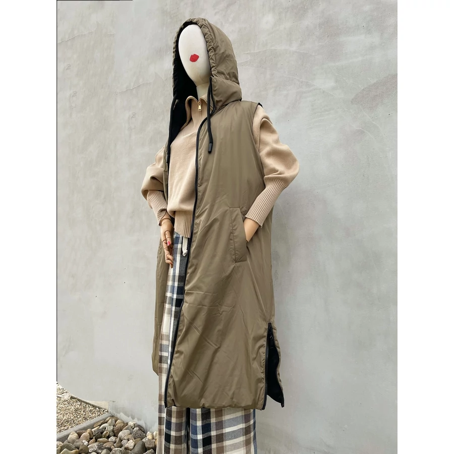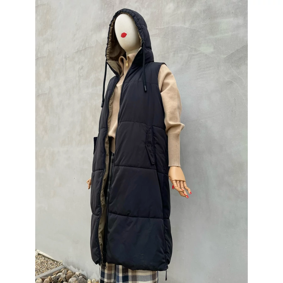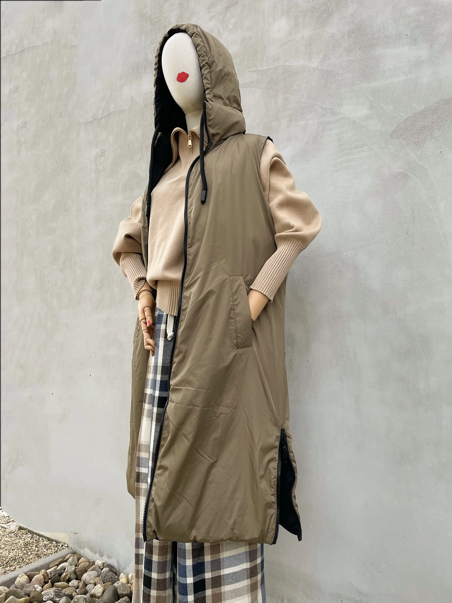 Barna-fekete kétoldalas, kapucnis Zara mellény. Kétirányú cipzárral. L-es